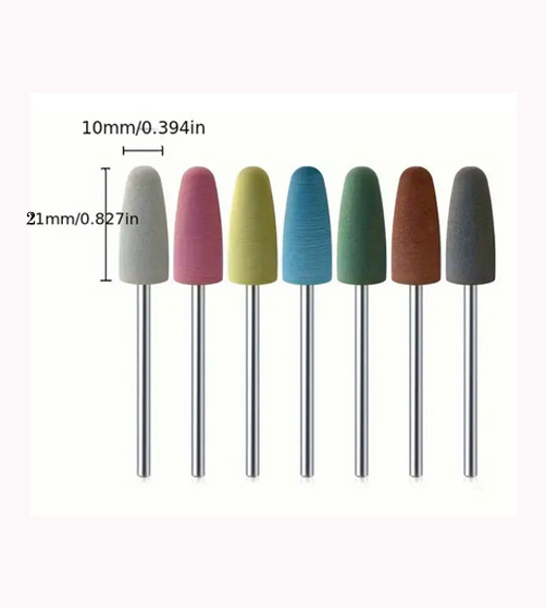 Punta color negro – Abrasivo extra fuerte. Punta color vino – Abrasivo fuerte. Punta color gris – Abrasivo medio. Punta color verde – Abrasivo suave. Punta color rosa – Pulido fuerte.